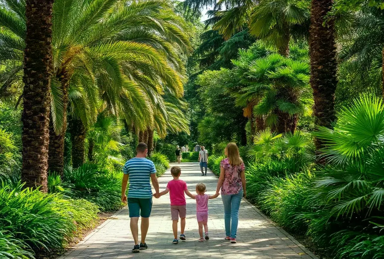 A terrain path in the shade of a 2.05-hectare subtropical park creates ideal conditions for walking, providing beneficial effects.