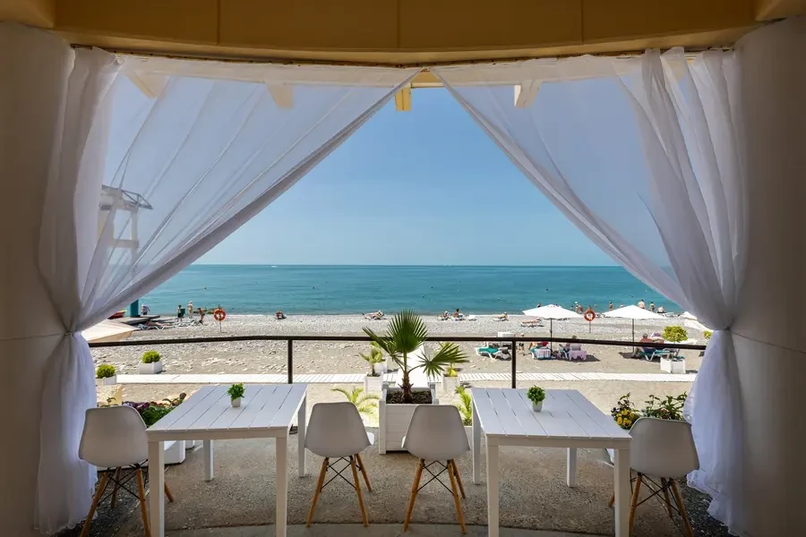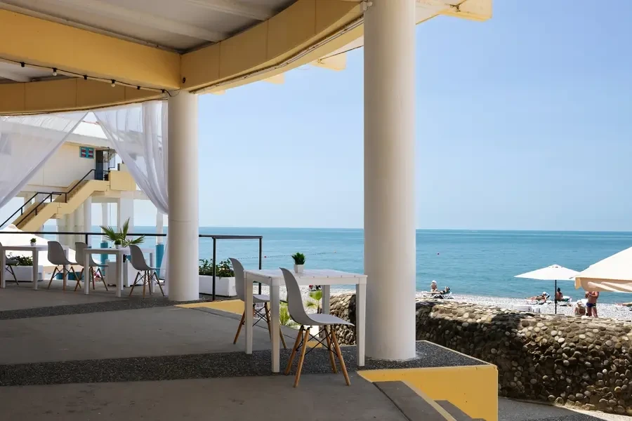In addition, there is a cafe-bar on the beach offering fast food and drinks, and a cafe with a full menu of Caucasian and European cuisine.