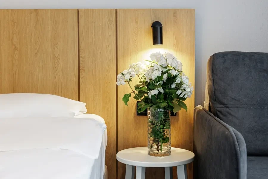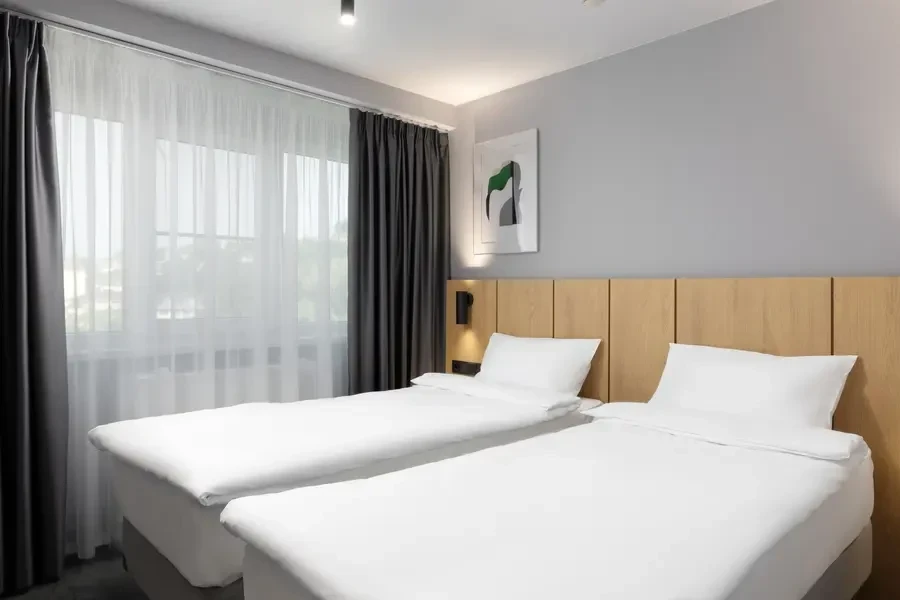 Bed size 80 x 200 in standard single rooms and 90 x 200 in single comfort rooms, 160 x 200 in double rooms.