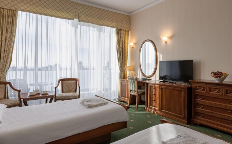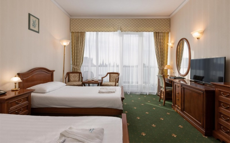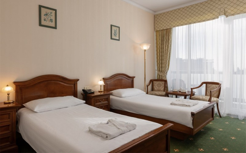 Размеры кроватей: 180*200 см — в стандартных номерах DBL, 100*200 см — в стандартных номерах TWIN, 180*200 см — в номерах Люкс и Апартамент.