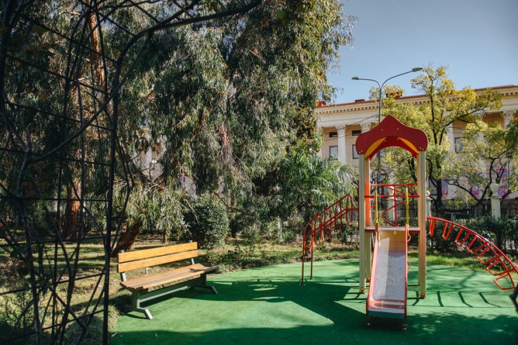 Да, на территории санатория есть детская игровая площадка.