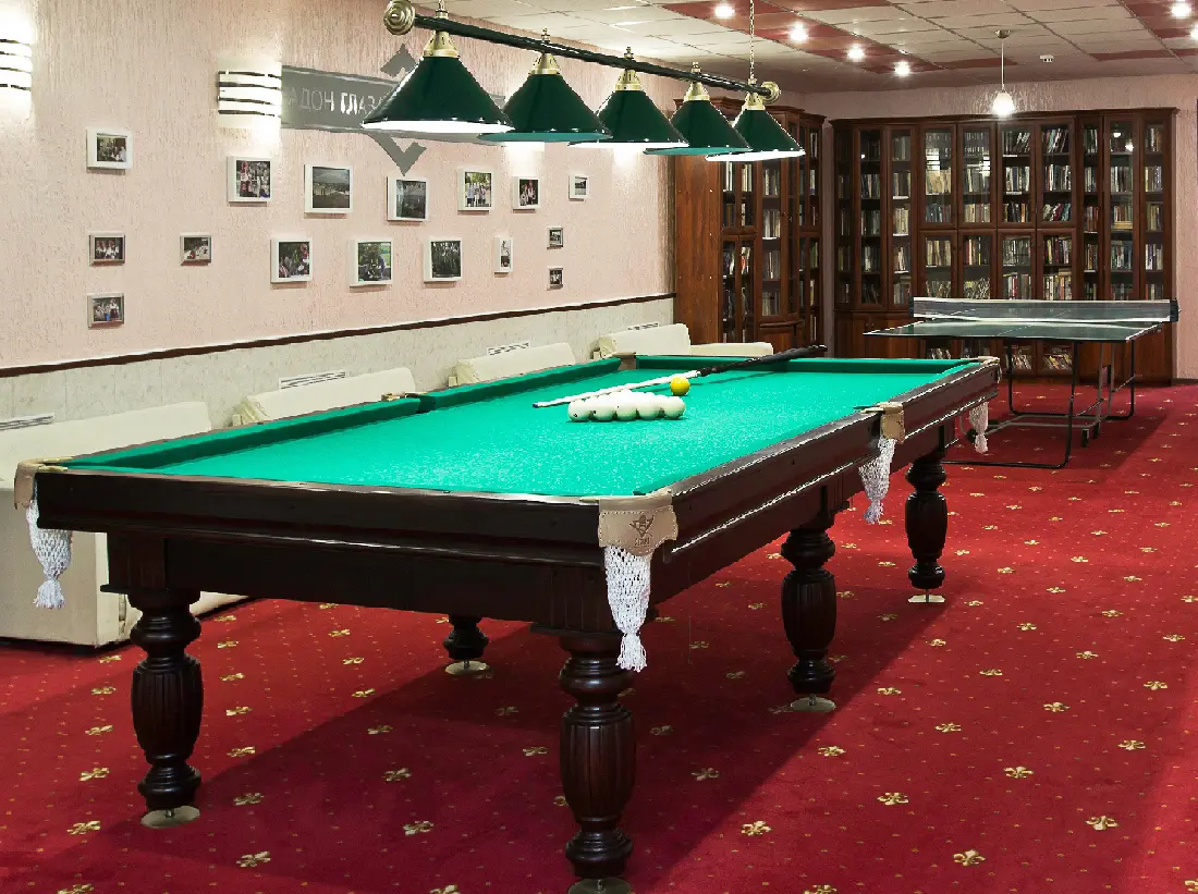 Санаторий Радон предлагает своим гостям увлекательно провести досуг, воспользовавшись бильярдом, расположенным в холле второго этажа. Бильярд доступен для посещения до 23:00 часов вечера. Это отличная возможность расслабиться после насыщенного дня процедур и насладиться игрой в приятной атмосфере вместе с друзьями или семьей.