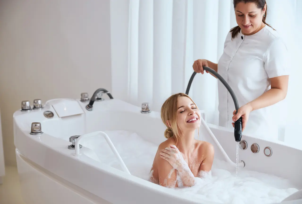 Особенности процедуры. Подводный душ-массаж представляет собой сочетание гидромассажа и релаксации. Пациент погружается в ванну с теплой водой, куда направляется мощная струя воды под высоким давлением, способствующая глубокому массажу мышц и тканей тела.