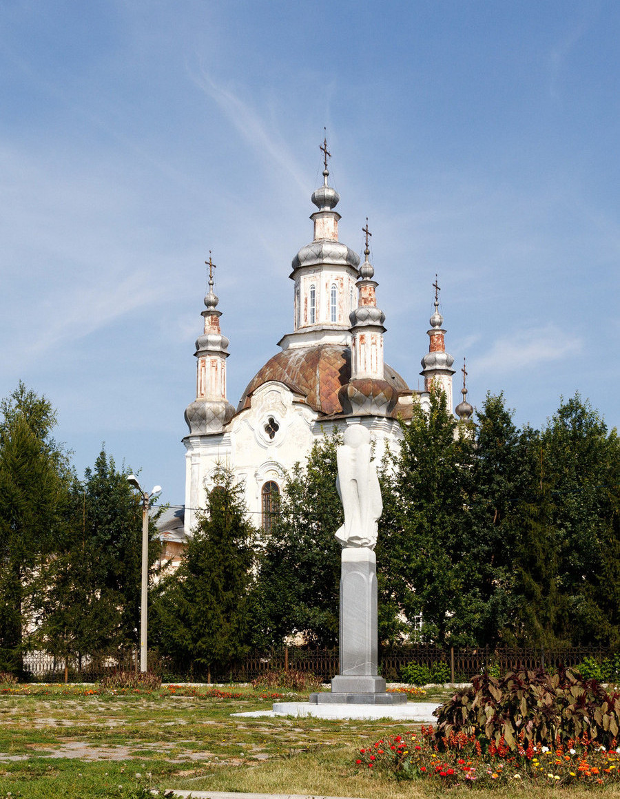 Здесь же, на площади, рядом с памятником Михаилу Архангелу расположен Спасо-Преображенский собор – первое каменное строение Шадринска. Он был возведен в конце 18 века в стиле сибирского барокко на месте деревянного Михаило-Архангельского собора. В 1837 году, когда в Шадринск дошла весть о гибели Пушкина, здесь, в одном из немногих храмов России, провели торжественную панихиду. Распорядившийся об этом городничий Арефьев, поклонник пушкинского таланта, получил потом нагоняй от губернатора за почтение к поэту, не пользовавшемуся благосклонностью царя. В 1930-х годах собор закрыли, и от полного разрушения его спасла только настойчивость шадринского историка и краеведа В. П. Бирюкова, который послал телеграмму на имя Сталина.
