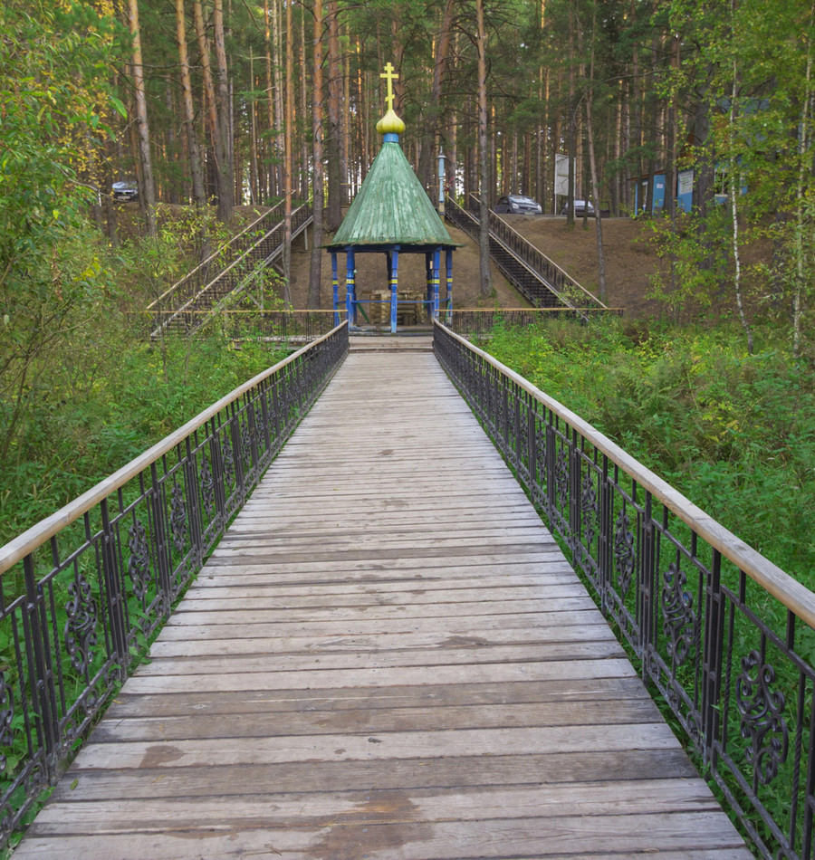 Недалеко от монастыря, в сосновом бору на берегу Нияпа находится источник со вкусной и целебной водой. По преданию, он появился одновременно с обретением Чимеевской иконы Божией Матери. У источника расположены часовня и купели, которые отапливаются, поэтому здесь комфортно и зимой. Рядом проложен мостик через реку, так что можно прогуляться по лесу. При источнике есть также иконная лавка, где можно подкрепиться вкусной монастырской выпечкой и горячим чаем.