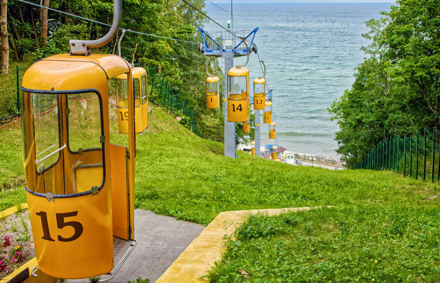 Недалеко от Охотничьего домика находится станция канатной дороги. Желтые кабинки-стаканчики за 5 минут доставят вас на набережную. Первый фуникулер появился в городе в начале 20 века, был рельсовым и исправно возил пассажиров до 1960 года, затем его заменили лифтовым подъемником.