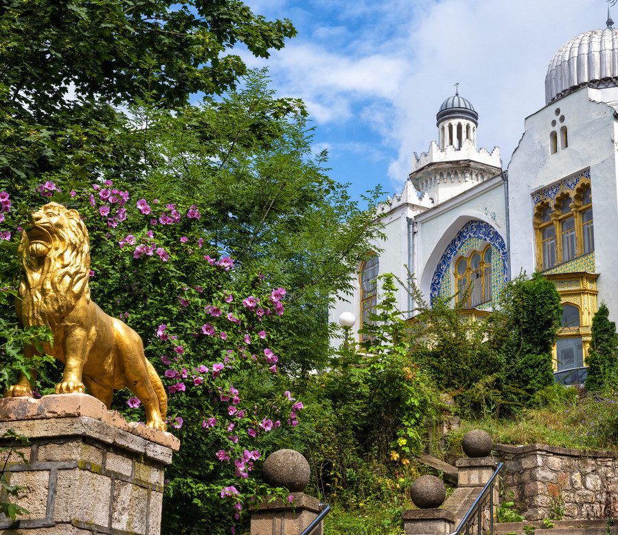 Сказочный восточный дворец был построен в 1912 году по заказу Сеида Абдулахада-хана, правителя Бухарского эмирата. Государство это в те времена находилось под протекторатом Российской империи, эмир был генералом российской армии и носил титул «высочество». На средства бухарского правителя были построены мечеть в Санкт-Петербурге (на тот момент самая большая в Европе), главные нарзанные ванны в Кисловодске и несколько собственных имений, в том числе дворцы в Ялте и Железноводске.