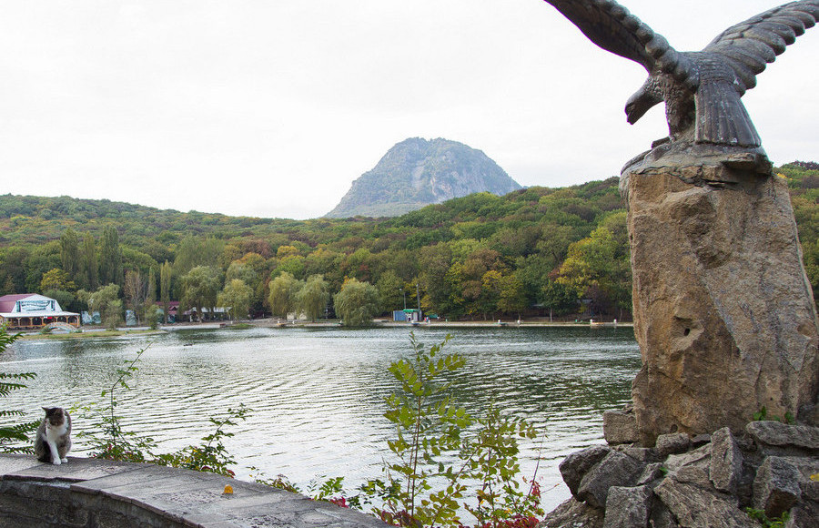 Вокруг озера приятно не спеша пройтись по прогулочному кольцу с жанровыми скульптурами и арт-объектами: Мост желаний, «Сердце Железноводска», велосипедистка, мальчик-рыбак, рояль в кустах – чего здесь только нет. Поднявшись на Парящую набережную, можно взглянуть сверху на озеро и расположенную рядом с ним площадь Феррум, где проводятся различные концерты и фестивали. На ней плиткой выложены обозначения химических элементов, которыми богата местная минеральная вода. Крупнее всего знак железа – Fe с атомным весом 26, который является кодом региона.