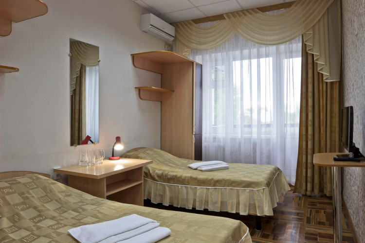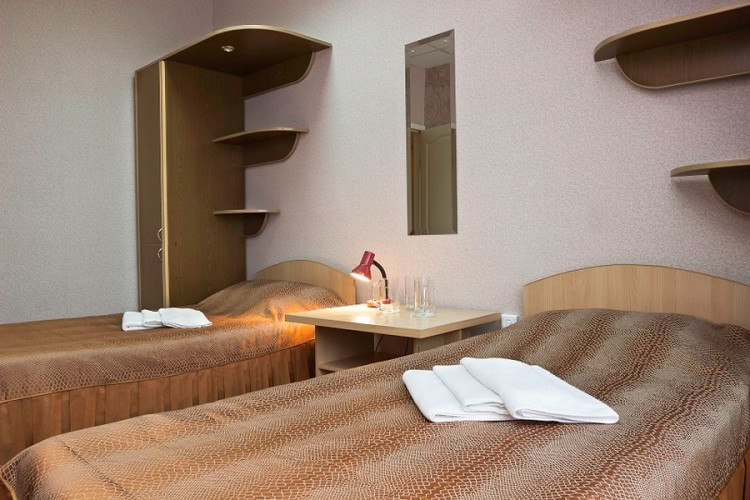 Односпальные кровати в номерах Эконом и Стандарт — 90*190 см, двуспальные кровати в номерах Комфорт — 160*190 см.